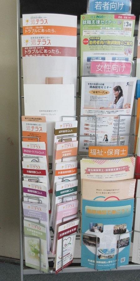 法テラス発行のリーフレットおよびチラシの提供をしています。